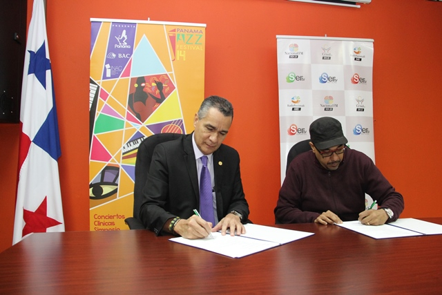 El Director General del Sistema Estatal de Radio y Televisión (SERTV), Pacífico Leonardo Alvarado y el Representante Legal de la Fundación Danilo Pérez, Danilo Enrico Pérez, firmaron un Acuerdo de Cooperación que tiene como propósito principal unir esfuerzos para dar a conocer las actividades que se llevarán a cabo en el marco de la celebración del Panama Jazz Festival 2017.