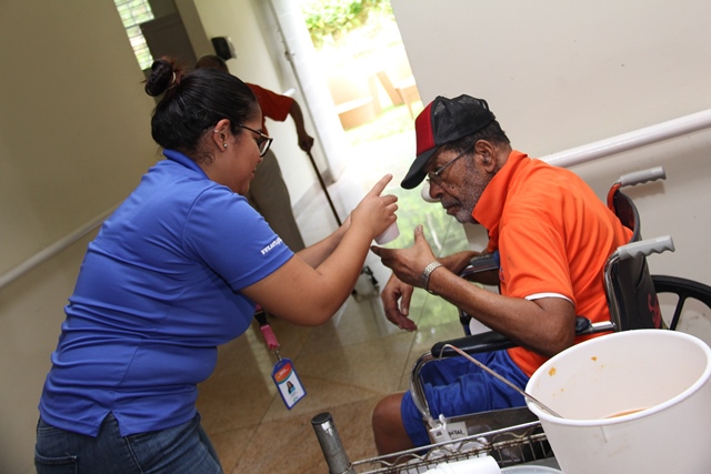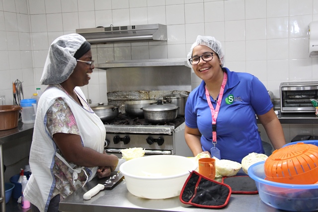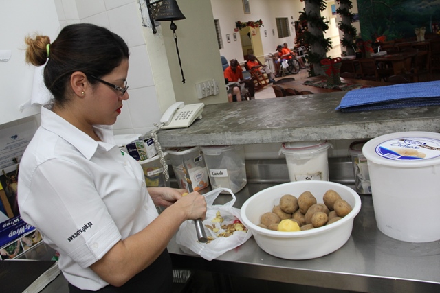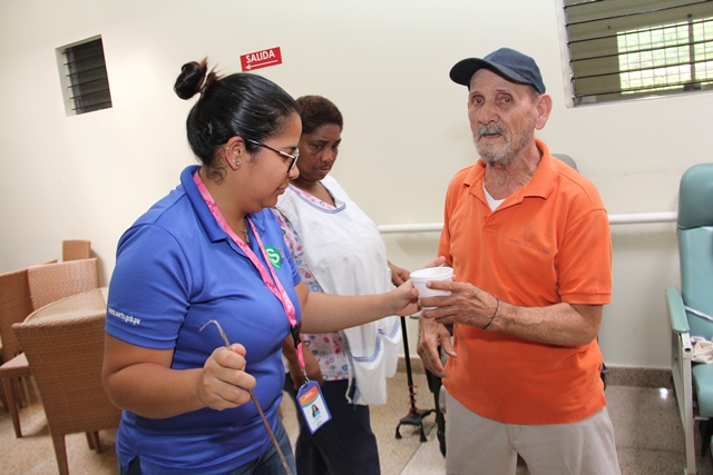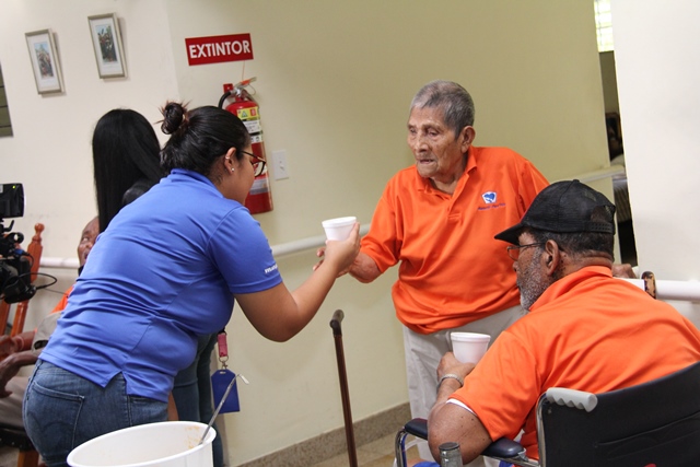 Durante esta breve estadía en el mencionado albergue los visitantes dialogaron con los adultos mayores y ayudaron a preparar los alimentos para el almuerzo.