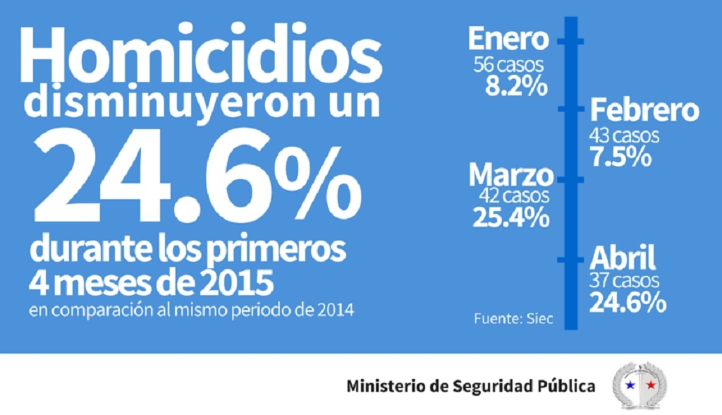 Las cifras de homicidios demuestran una disminución significativa del 24.6 % durante el primer cuatrimestre de 2015, en comparación al mismo periodo del año pasado, según informes [...]