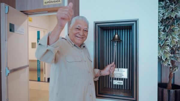 “El tratamiento ha sido magnífico. Estoy agradecido y creo que voy a llegar a los 80 años de vida”, afirmó entre risas, emocionado tras tocar la campana que simboliza el fin del tratamiento y el inicio de una nueva etapa.