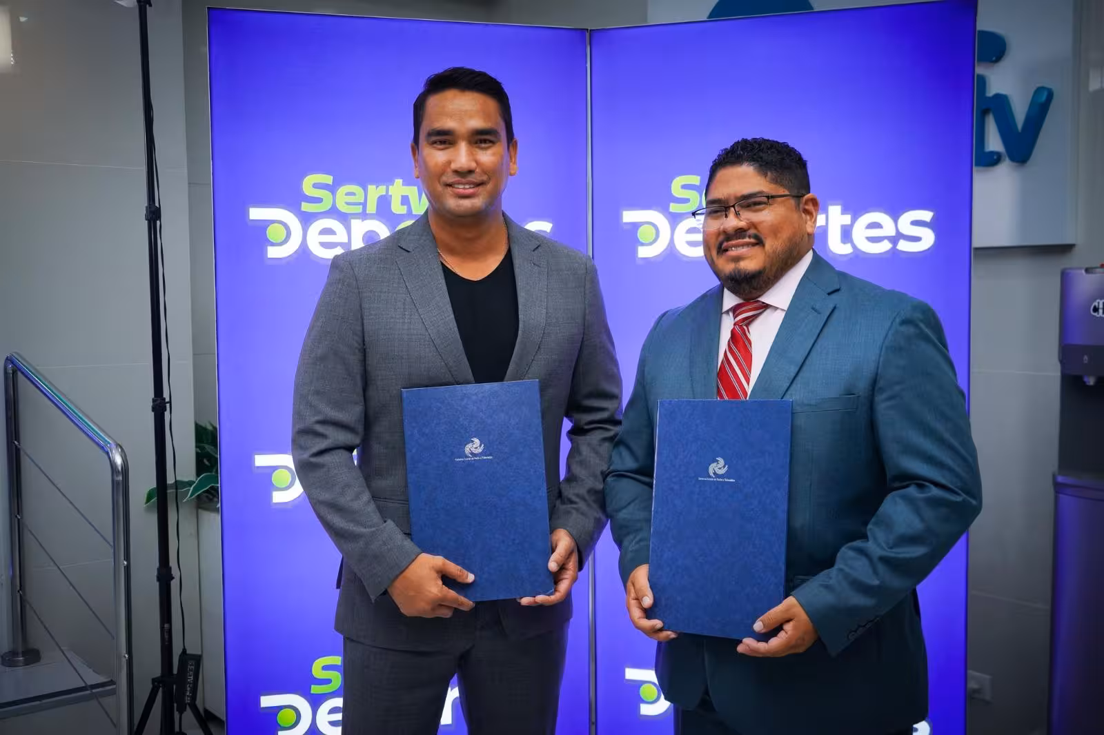Para la firma del acuerdo, en representación de Pandeportes estuvo Santos Cano, jefe de la Oficina de Información y Relaciones Públicas, en nombre del director general Miguel Ordóñez. Por parte de SERTV, participó su director general, Dustin Guerra.