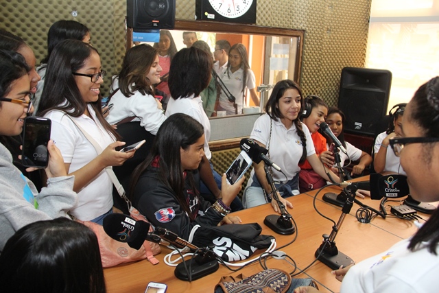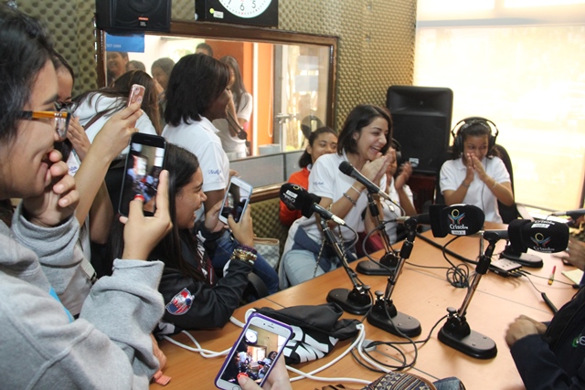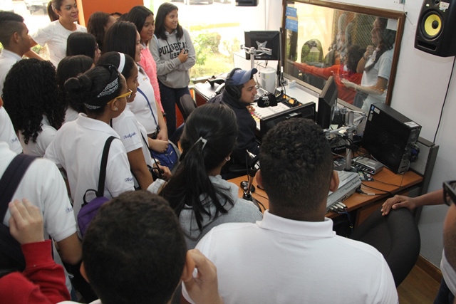 El último grupo de estudiantes que visitó los medios estatales fue el 11°B, que luego de conocer el estudio de televisión y la sala de subcontrol de Sertv, enviaron mensajes y saludos a los radioyentes de Crisol FM, a través del programa de música típica popular “La Encomienda”.