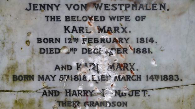La lápida de mármol colocada sobre la tumba de Karl Marx (1818-1883) ha resultado dañada en un ataque deliberado durante el pasado fin de semana, informó la entidad que gestiona el cementerio de Highgate, en el norte de Londres. El autor del ataque trató de borrar con un martillo el nombre de Marx de la placa, que fue grabada por primera vez en 1881, tras la muerte de la esposa del autor de «El capital», Jenny von Westphalen (1814-1881).