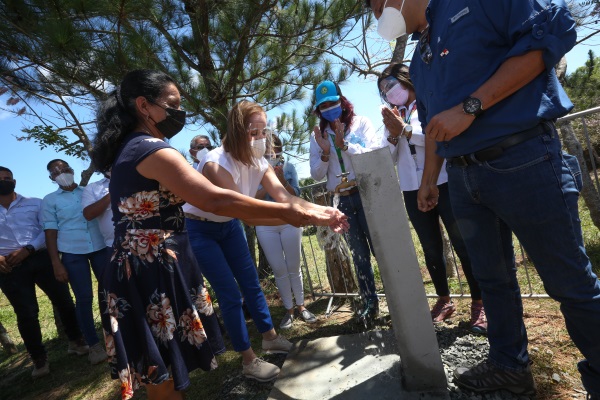 «El agua, siempre ha sido importante para nuestra nutrición, higiene personal y consumo, pero en estos tiempos de pandemia cobra mayor relevancia», dijo la Primera Dama, que asistió a la inauguración de la obra con Julieta Spiegel de Carrizo, esposa del Vicepresidente de la República.
