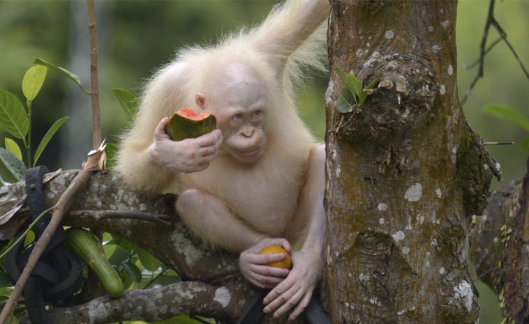 Liberan la orangutana albina Alba en un parque nacional de Indonesia