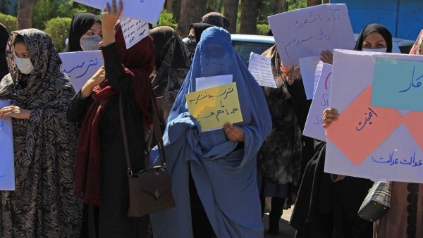 Decenas de mujeres se manifiestan en Herat para pedir un Gobierno inclusivo en Afganistán.