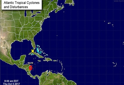 El informe del Instituto Meteorológico Nacional (IMN) indica que la depresión tropical número 16 ya es catalogada como la tormenta tropical Nate, la cual se ubica frente a la costa caribeña de Nicaragua.