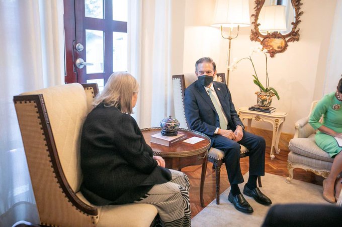 Durante la reunión, el presidente Cortizo Cohen, estuvo acompañado de la ministra de Relaciones Exteriores, Janaina Tewaney Mencomo.