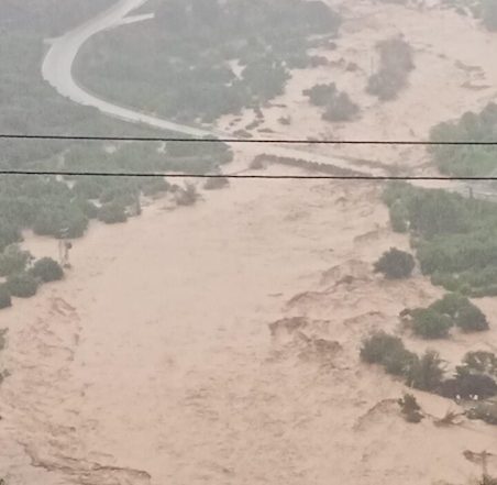 Se desborda el río Benamargosa, en Málaga, por las fuertes lluvias y el agua entra en las casas