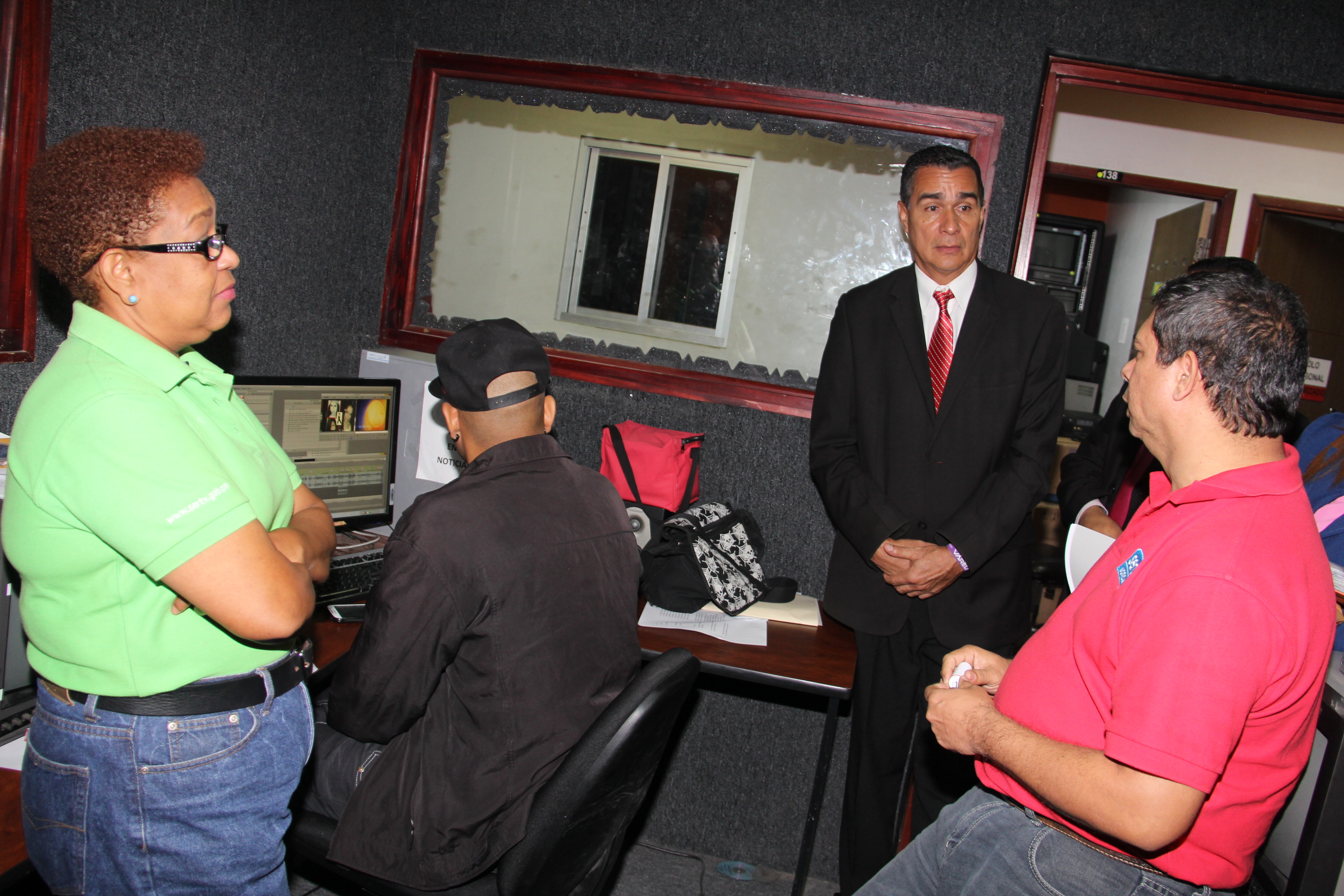 Durante esta acción Alvarado, además de tener un ameno encuentro con los colaboradores de SERTV, realizó una evaluación de las diferentes áreas de la institución, donde se informó de las necesidades más urgentes de cada departamento y obtuvo información de primera mano de parte de jefes y personal de las diferentes secciones que conforman los medios estatales.