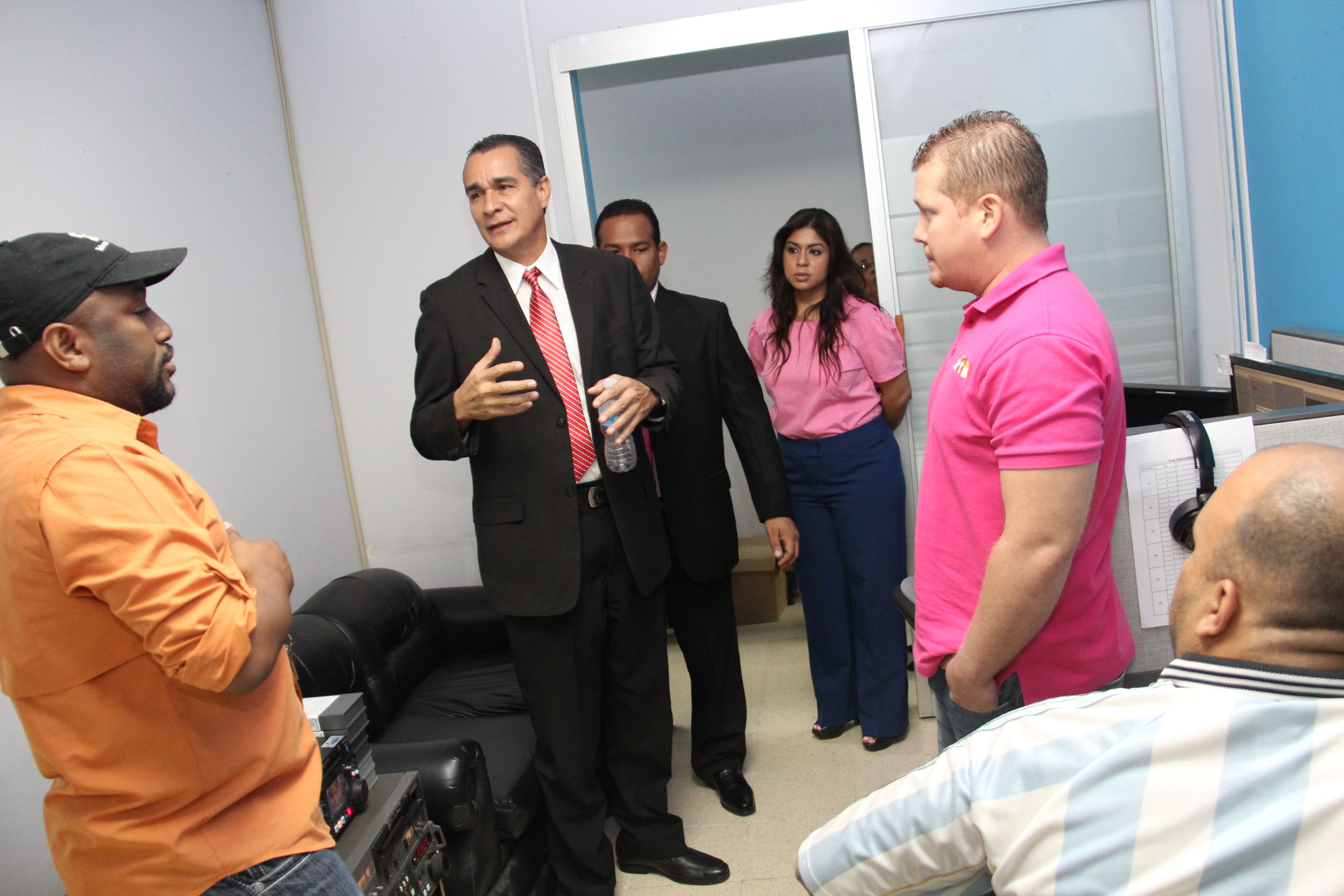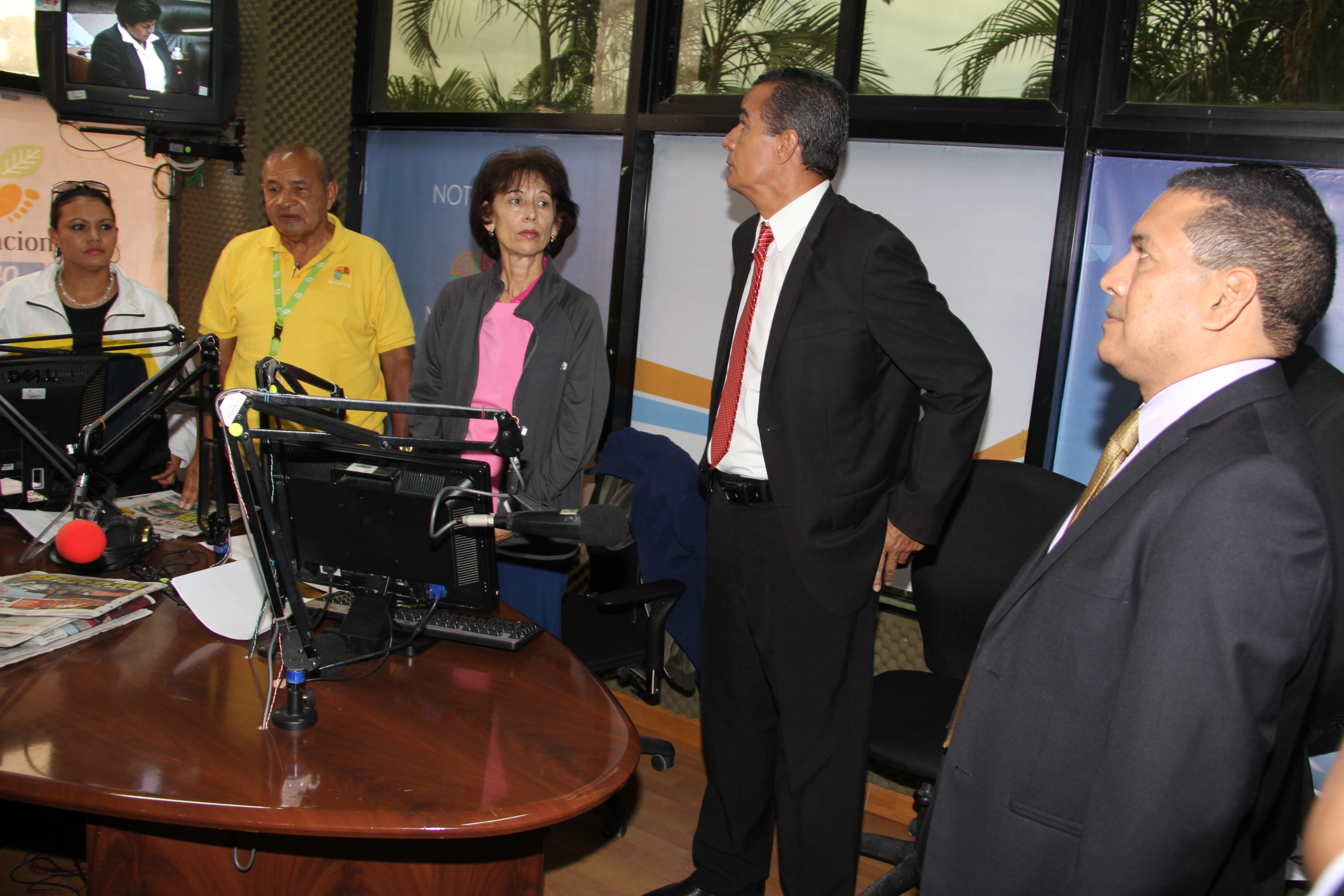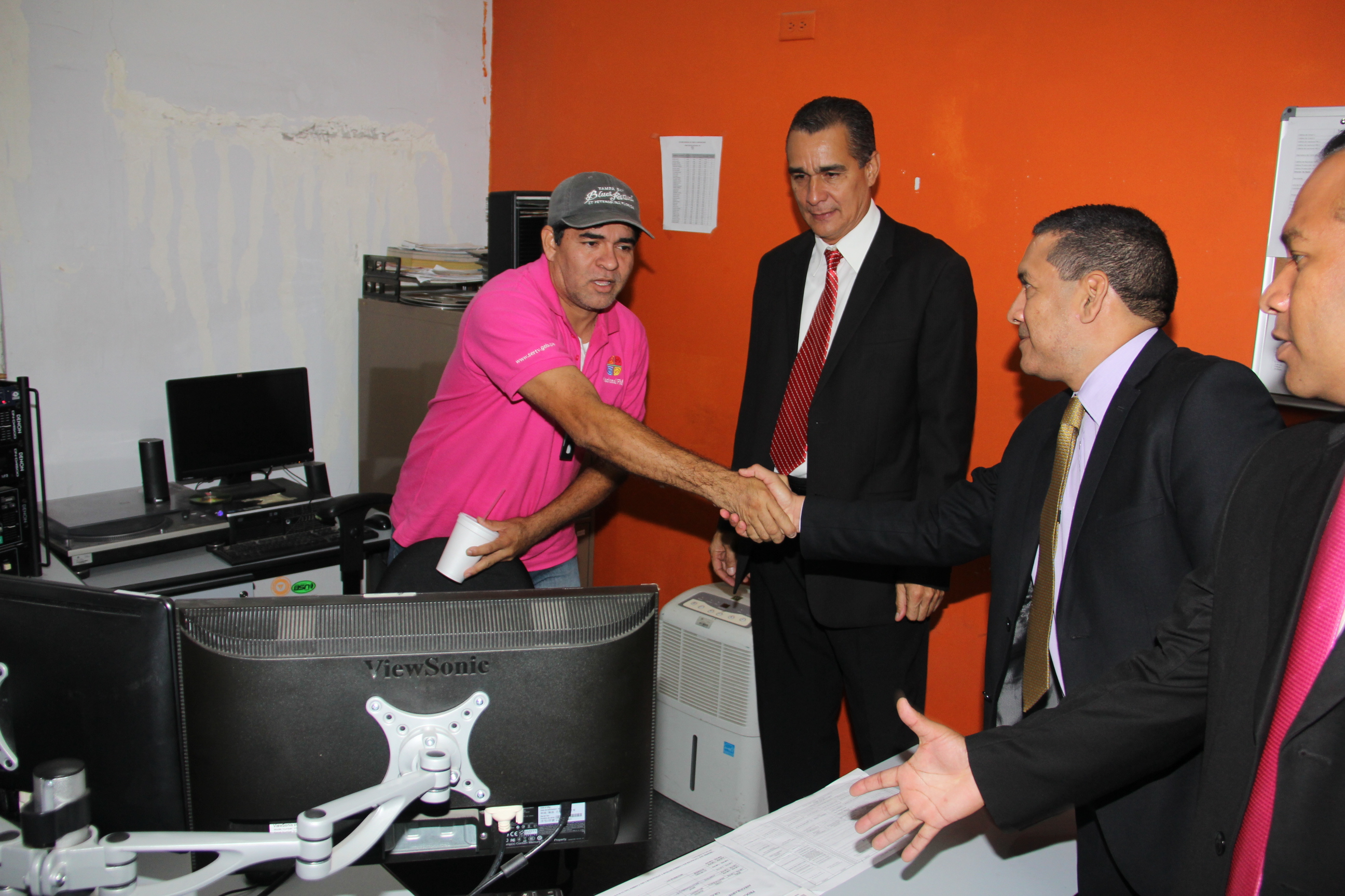 El Director General del Sistema Estatal de Radio y Televisión, Leo Alvarado, en compañía del Subdirector General de Televisión, Rafael Montes Gómez, el Subdirector General de Radio, Jorge Enrique Concepción y el Secretario General de la Institución, Rogelio René Sánchez, realizó un recorrido por sus instalaciones.