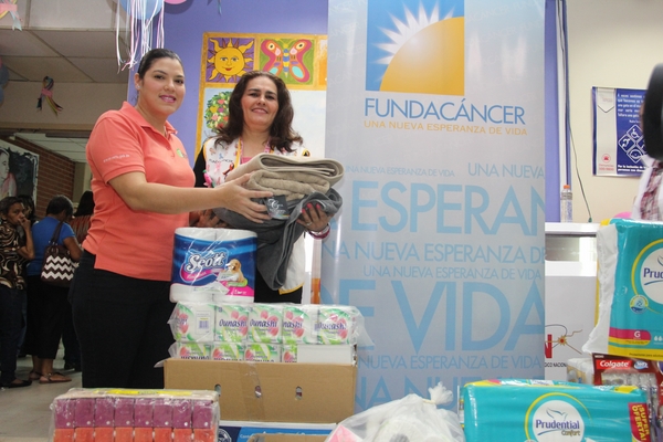 El donativo, consistente en productos que son necesarios en la atención de los pacientes que acuden a las citas médicas al Hospital Oncológico, fue entregado por Mileika Igualada, Jefa de Capacitación y Bienestar Laboral de SERTV a Rosario de Cedeño, colaboradora de Fundacáncer.