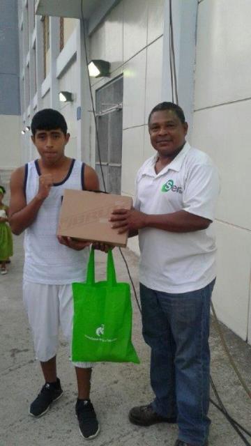 Una prueba más de que SERTV apoya el deporte nacional en sus diferentes disciplinas lo constituye la reciente donación de uniforme a Marlon Herrera Herrera, joven de 14 años con un futuro prometedor en el boxeo, que ha representado a la provincia de Veraguas en tres oportunidades, tanto en su tierra natal como en Capira y Chiriquí.