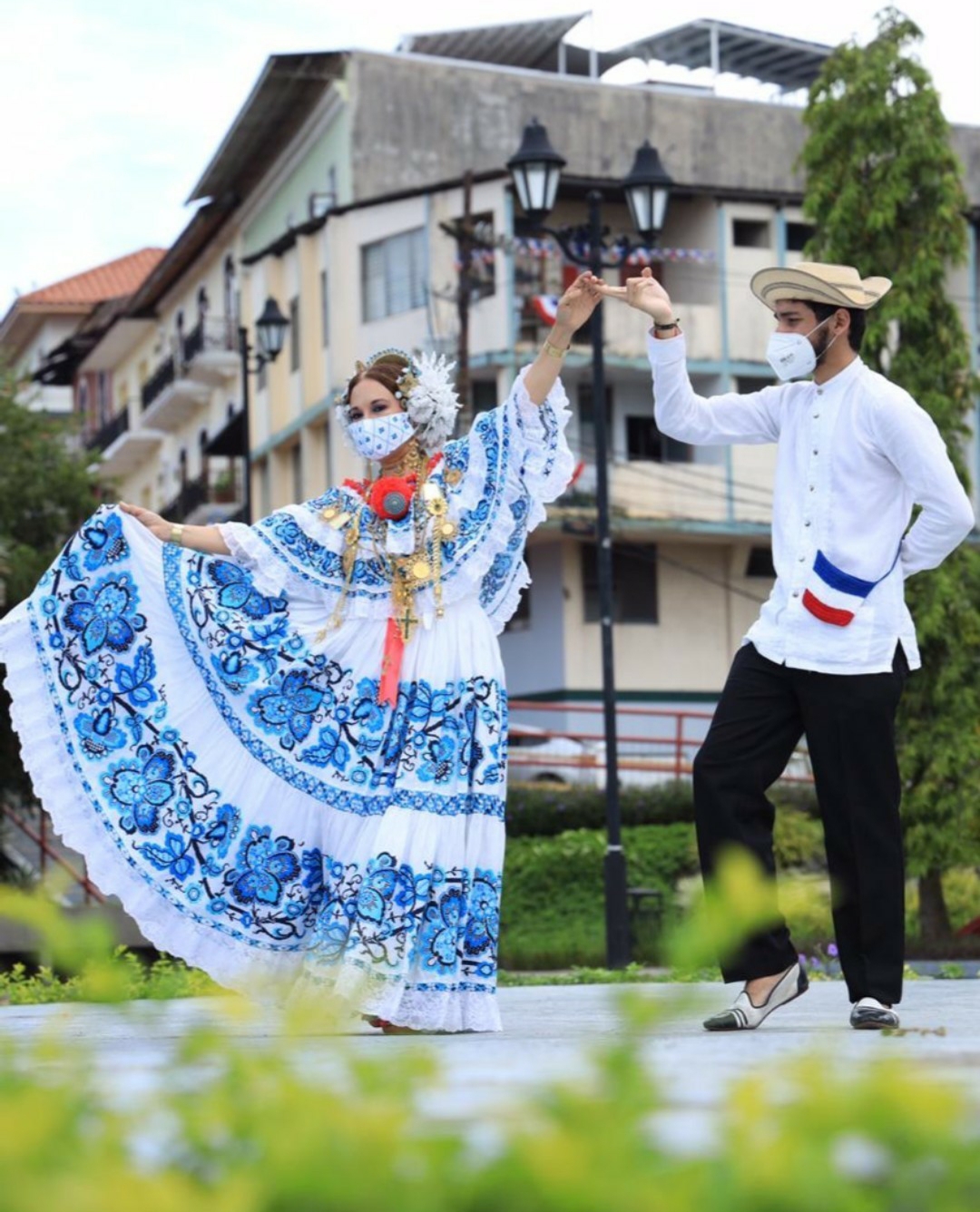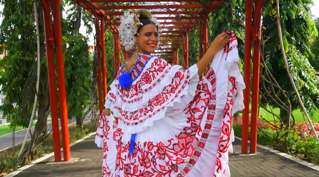 Y celebrando la independencia de España el 28 de noviembre mostró “El Pasillo” que es un baile que proviene del vals y se arraigó en los países latinoamericanos en el siglo XIX a manera de celebración de la independencia que cada uno de los países iba adquiriendo, se convierte en uno de los bailes preferidos por la aristocracia tanto urbana como rural. Mostrando una pollera zurcida en cuatro tonos degradados de rojo, contrastada con el color azul, cadenas reglamentarias, tembleques de perla y su juego de peinetas, presentando “El suspiro de una fea” interpretado por el maestro Vitín Paz.