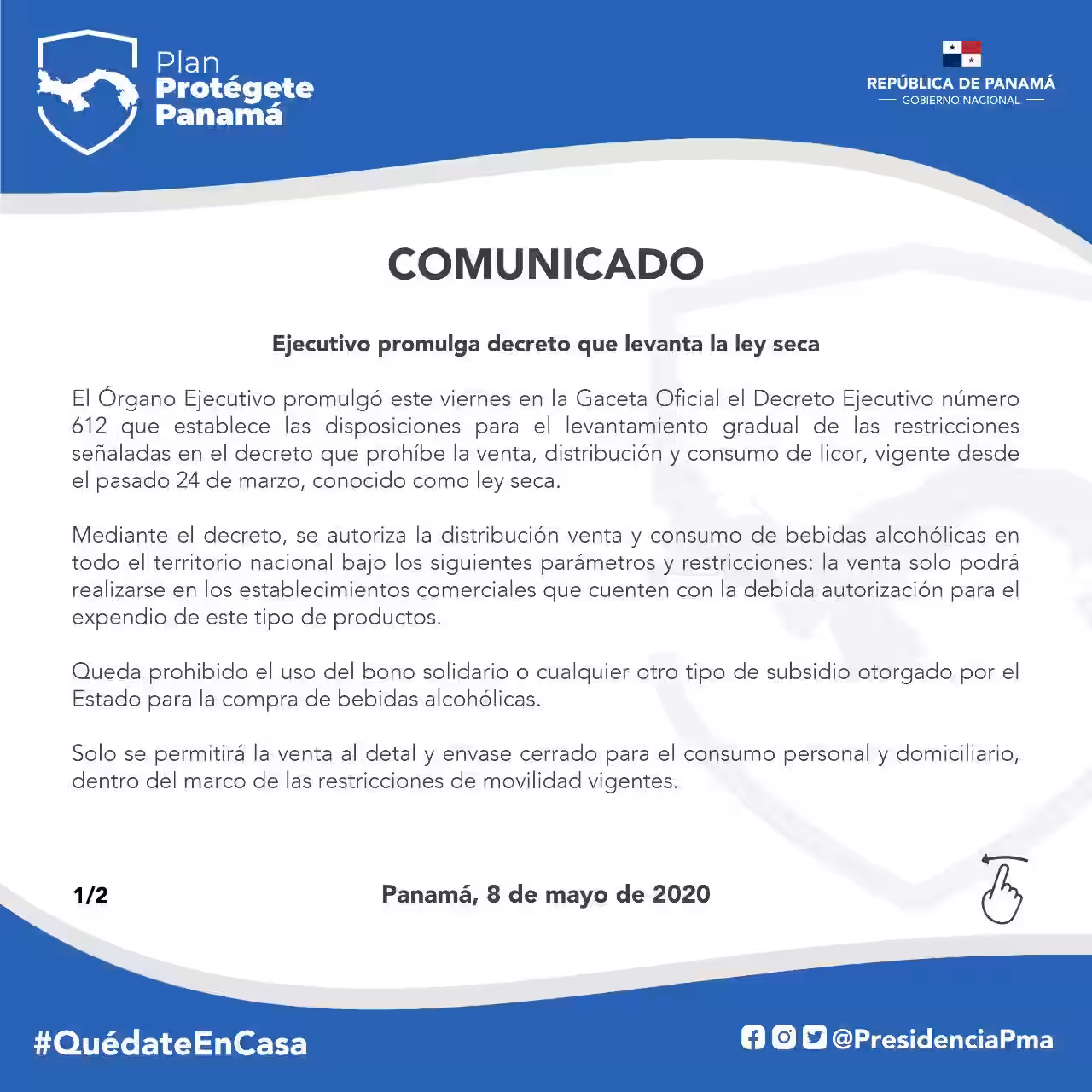 La llamada ley seca había sido aprobaba mediante el Decreto Ejecutivo 507 de 24 de marzo, el cual indica, en su artículo 7, la prohibición, distribución y consumo de bebidas alcohólicas en todo el territorio nacional, mientras dure el estado de emergencia nacionales.