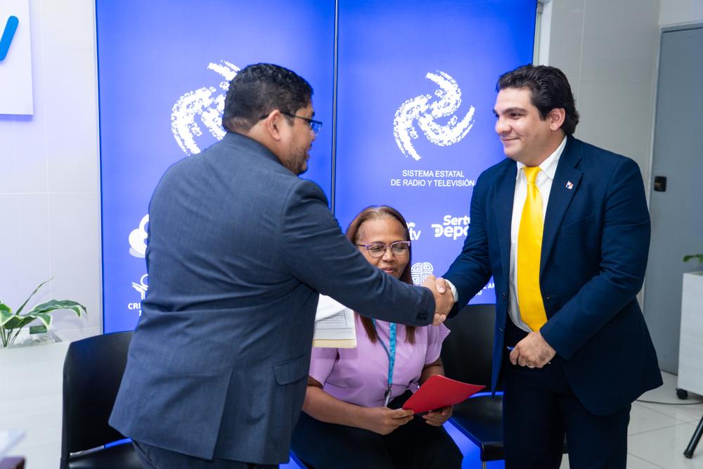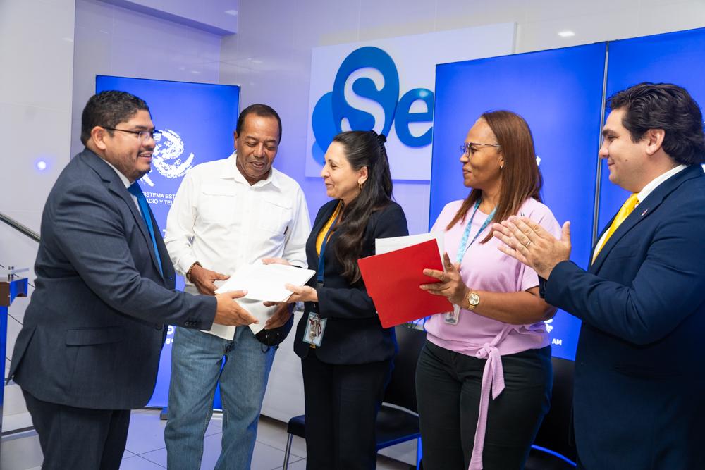 Con gran orgullo y satisfacción, colaboradores de SERTV en un acto en las instalaciones, recibieron por parte de la Unidad Administrativa de Bienes Revertidos (UABR) del Ministerio de Economía y Finanzas, el original de la escritura pública N° 5 del 13 de febrero de 2025 de la finca donde están actualmente las instalaciones de Sertv, Sertv Deportes y sus tres emisoras.