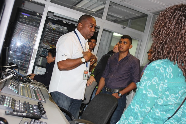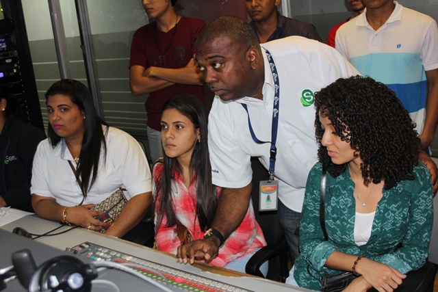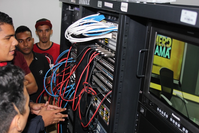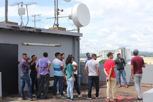 En esta gira académica, los futuros ingenieros fueron atendidos por colaboradores de las direcciones de Comunicación, Ingeniería y Operaciones, quienes les explicaron el funcionamiento de los equipos que son utilizados en la producción y transmisión de programas televisivos en Sertv.