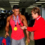 La directora de Deportes del Instituto Panameño de Deportes Ana de Girón, recibió en el terminal aéreo de Tocumen al fisiculturista Juan Abadía quien logró dos medallas de oro, en el Mundial de Fisiculturismo y Finess, que con la participación de 52 países se celebró en Santo Domingo, República Dominicana.