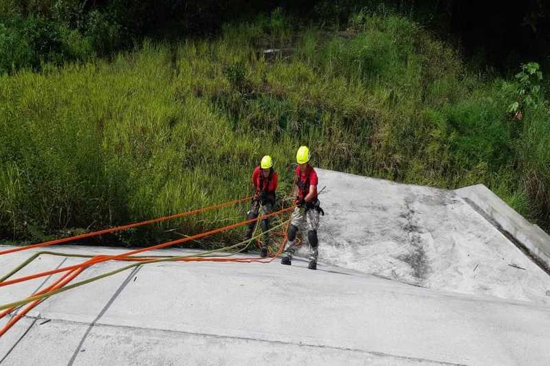 Empleando cuerdas, arnés y poleas para descender o ascender, bomberos [...]