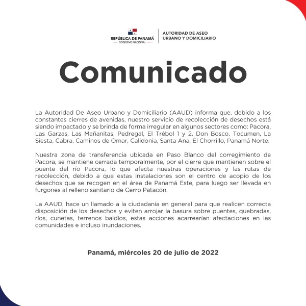 Por medio de comunicado, representantes de la Autoridad de Aseo [...]