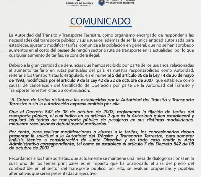 Por medio de comunicado, representantes de la Autoridad de Tránsito [...]
