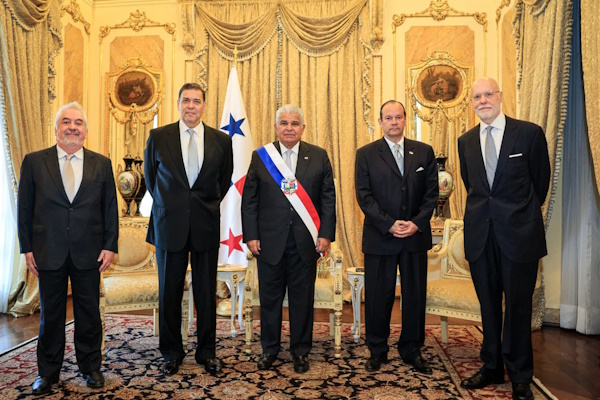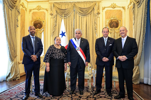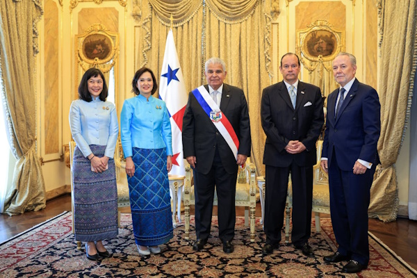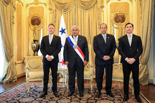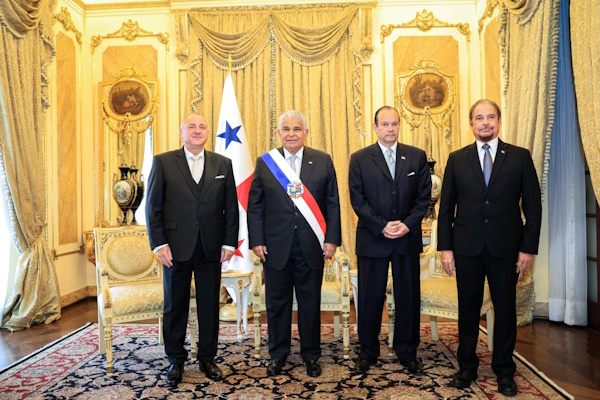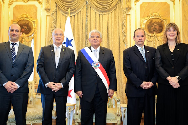 El presidente Mulino, en compañía del ministro de Relaciones Exteriores, Javier Martínez-Acha, dio la bienvenida, en sus respectivos turnos, a los embajadores extraordinarios y plenipotenciarios de Israel, Brasil, Suecia, Sudáfrica, Tailandia, Vietnam, Malasia y la República Eslovaca.