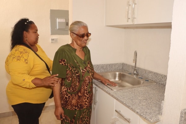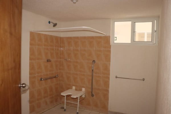 Los apartamentos para personas con discapacidad son más espaciosos en el baño, donde la puerta es más ancha, hay barras para apoyarse en el inodoro, y en cuanto al fregador y la tina de lavar están a una altura para su fácil acceso.