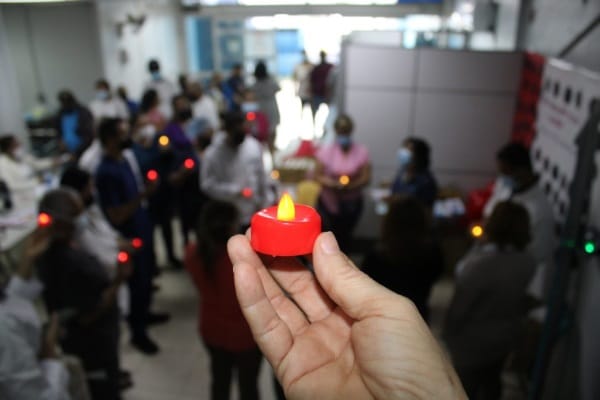 La ceremonia, se realizó en conjunto con pacientes, personal de médico y administrativos de la policlínica, quienes luego de escuchar la exposición de la Sra. Yamina Samudio de la Asociación Panameña para la Planificación de la Familia, (asociada al GOCPS), quien explicó el objetivo de esta actividad, con una vela en la mano, elevaron una plegaria en memoria de todas la víctimas de la pandemia del VHI.