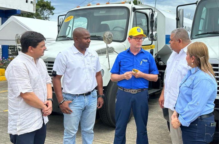 En el marco de su visita, recibió la donación de tres camiones cisterna por parte de la empresa Chiquita Panamá, que beneficiarán a las comunidades como: Finca 4, Finca 51, Deborah, California, Tehobroma y Puente Negro, entre otras. Cada cisterna, tiene capacidad para 2,500 galones de agua potable.
