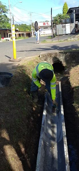 En el sector de La Pesa, la sección de drenajes pluviales del MOP, colocó 65 metros lineales de mediacañas y construyeron otros 44 metros de cunetas pavimentadas, que suman un monto de B/.1,150.00 para resolver los problemas de canalización de aguas.