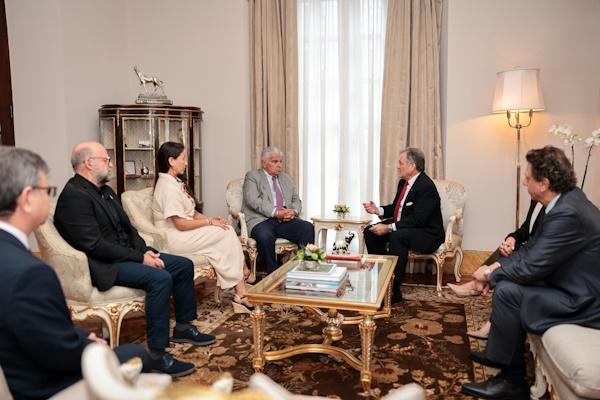 Los ministros de Ambiente de Colombia, Lena Estrada; Panamá, Juan Carlos Navarro; Ecuador, María Cristina Recalde; y Costa Rica, Franz Tattenbach, fueron recibidos el viernes, 25 de abril del presente año, por el presidente de Panamá, José Raúl Mulino, con motivo del traspaso de la presidencia del Corredor Marino del Pacífico Este Tropical (CMAR), iniciativa voluntaria de cooperación para la conservación marina entre estas cuatro naciones.