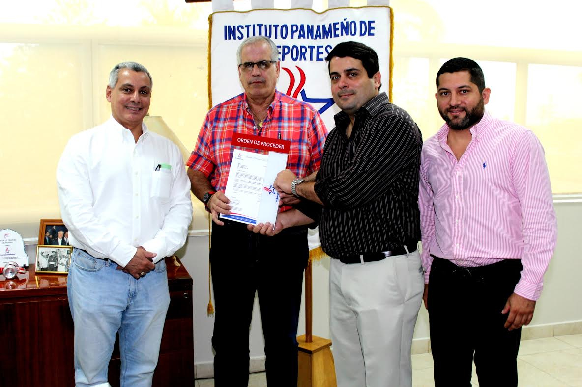 El director general del Instituto Panameño de Deportes Roberto Arango Chiari entregó este miércoles 5 de abril al representante de la empresa Dirección de Obras S.A., la orden de proceder para el estudio, diseño y construcción de la nueva piscina Adán Gordon, proyecto que tendrá una inversión superior a los tres millones de balboas. Les acompañaron, Juan Tuñón, Secretario General y Alberto Guerra, Jefe de Proyectos Especiales.