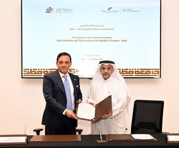 El embajador de Panamá en Qatar Musa Asvat y el Dr. Omar Al-Ansari, presidente de la Universidad de Qatar (QU), firmaron una carta de intención para la cooperación académica, con el objetivo de establecer esquemas de becas QU específicos y becas recíprocas en instituciones panameñas interesadas, y promover el entendimiento mutuo, la colaboración académica, Intercambios culturales y de personal.