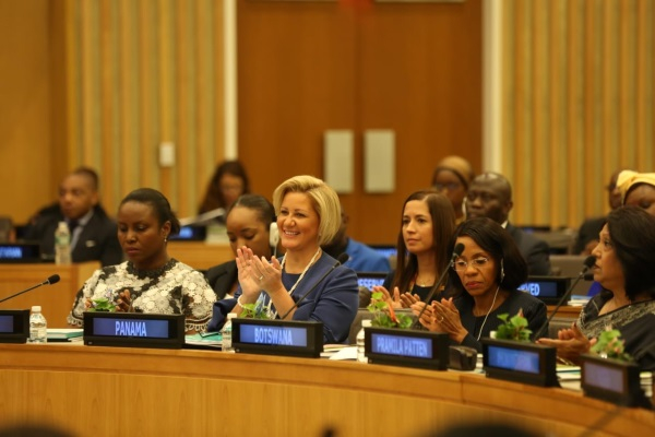 Durante su aportación en el Panel: Eliminación de la Violencia Sexual y de Género, la Protección de la Salud y los Derechos de las Mujeres, Niñas y Niños en Entornos Humanitarios, realizado en Naciones Unidas, organizado por ONUSIDA y la Organización de Primeras Damas Africanas contra el VIH / SIDA, ONU Mujeres, UNICEF, UNFPA, pronunció, que los efectos dañinos de las crisis humanitarias, tales como: desplazamiento, la destrucción de estructuras de la comunidad, pobreza, y la falta de recursos aumenta el riesgo de violencia por razón de género.