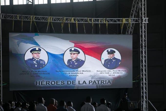 La ceremonia en honor a los héroes de la patria caídos en cumplimiento del deber, el subcomisionado post mortem Félix Barrera; el mayor post mortem Javier Hinestroza y el sargento segundo post mortem Héctor Atencio, se realizó en la Base Aérea Octavio Garrido Rodríguez, en Howard.