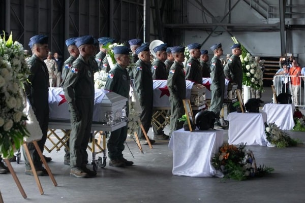 “El fallecimiento de una unidad aeronaval representa la muerte de un pedazo de la Patria; los héroes que hoy despedimos simbolizan la más pura esencia de los miembros del Servicio Nacional Aeronaval y de la familia uniformada en su conjunto”, manifestó el director general del SENAN en su intervención.