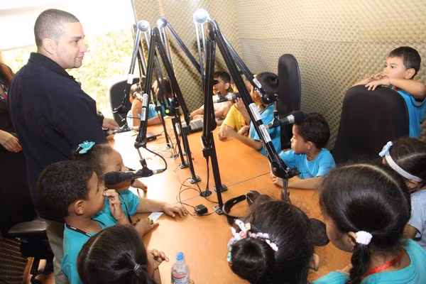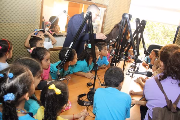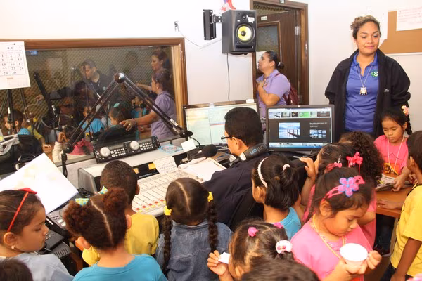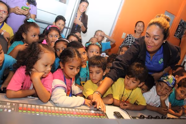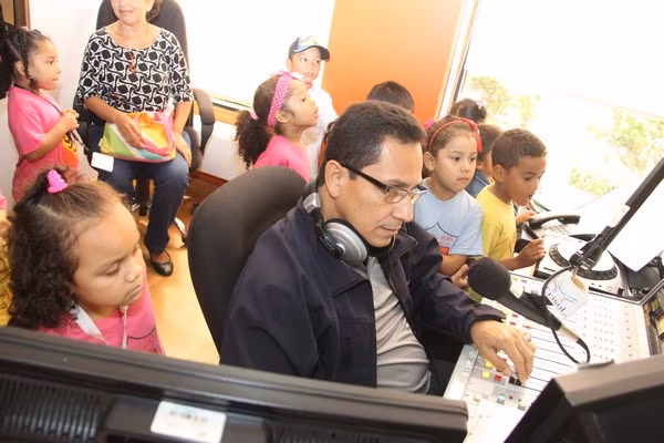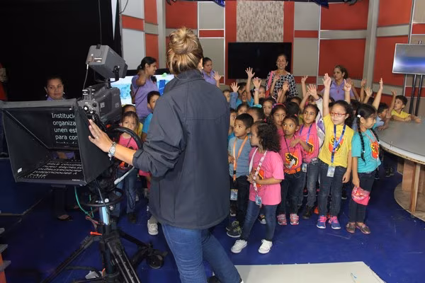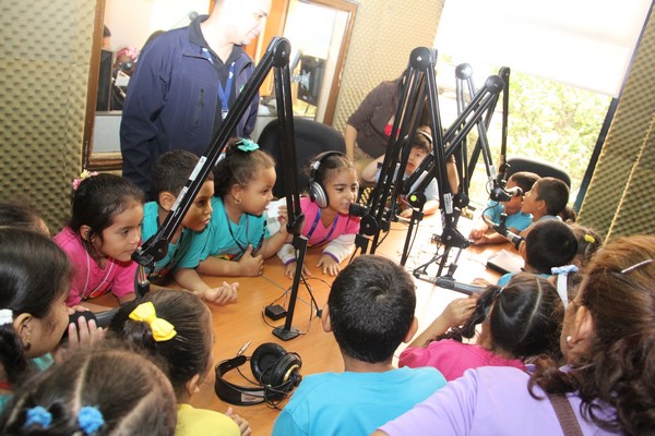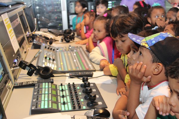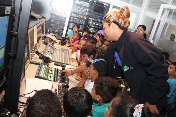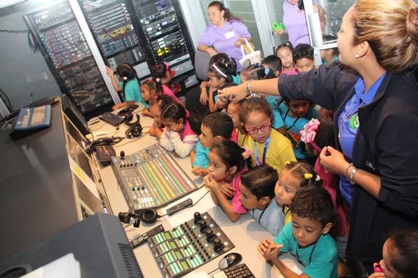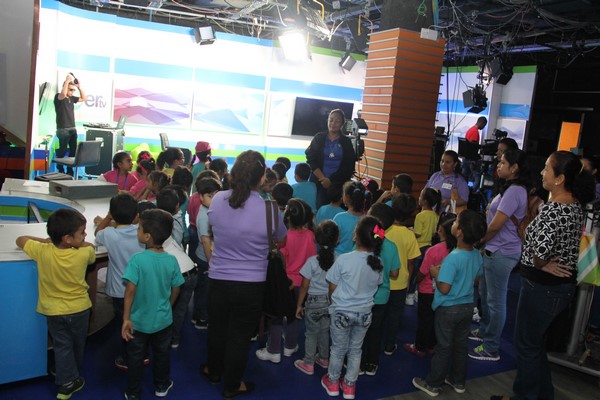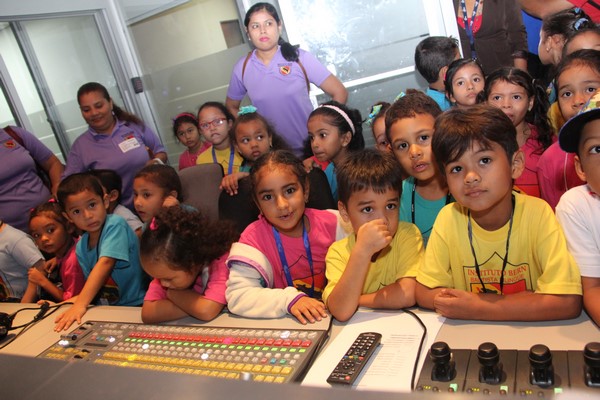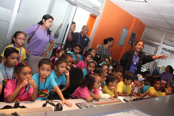 La algarabía, risas y caritas de asombro de los pequeñines se hicieron sentir durante el recorrido por las diferentes áreas técnicas de la televisora estatal y en la cabina de radio de Crisol FM sus infantiles voces fueron transmitidas por el programa típico “La encomienda”, conducido por Lino Carrera y Gloriana Reyes.